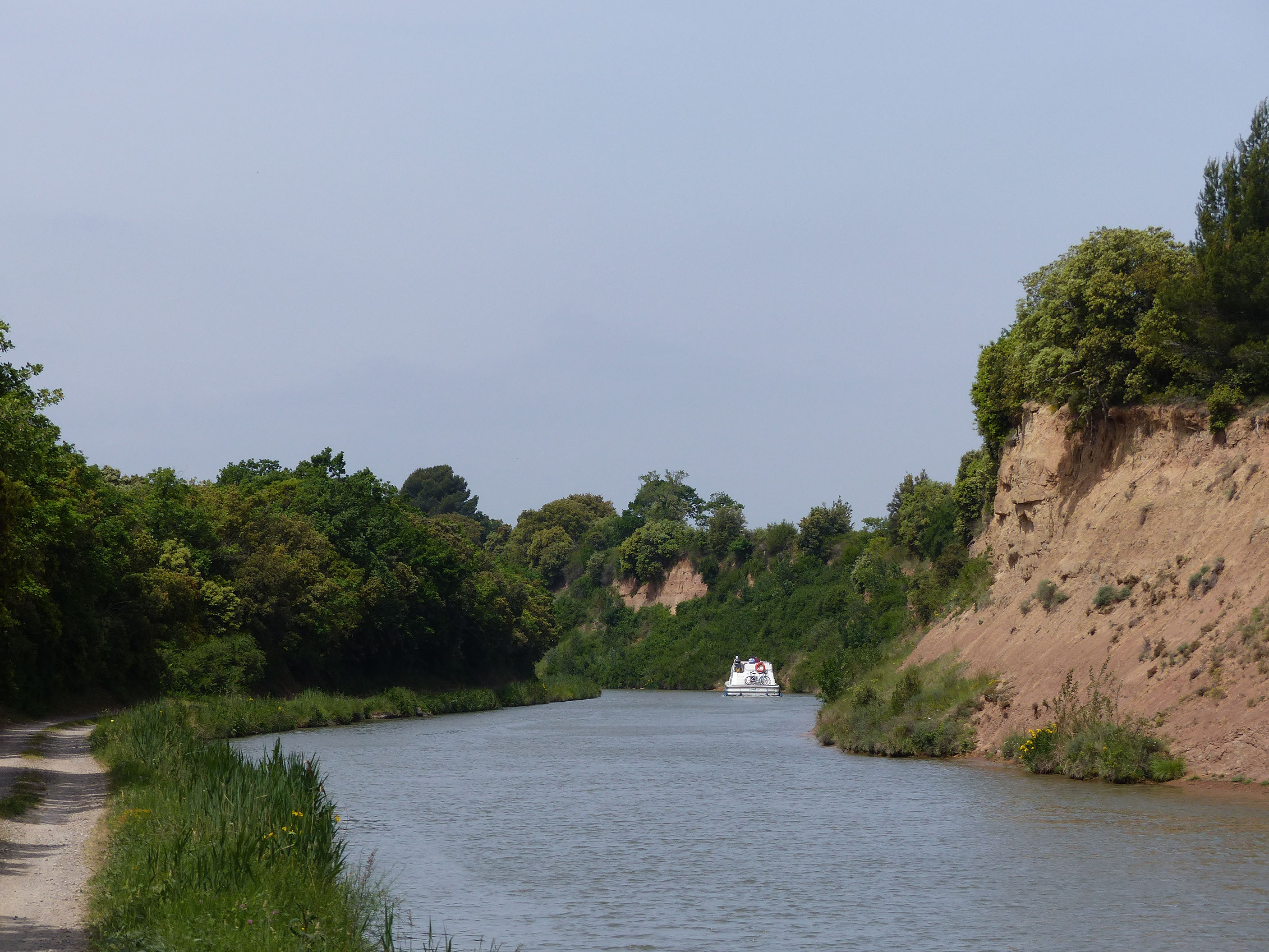 Nous sommes partis de Toulouse le 20 mai, en groupe (9 personnes, moyenne d'âge 54 ans ) Après 4 jours et 240 km arrivée à Agde. Parcours sous le soleil, heureusement parce que s'il pleut il y a forcément de la boue sur certains chemins en terre battue.